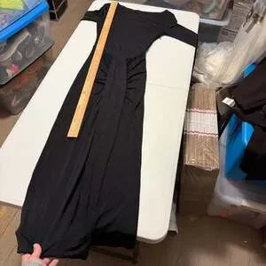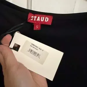 Staud Gres Midi Dress Black Ruched Slimming Long Sleeve Boat Neck Minimal Small