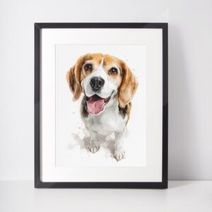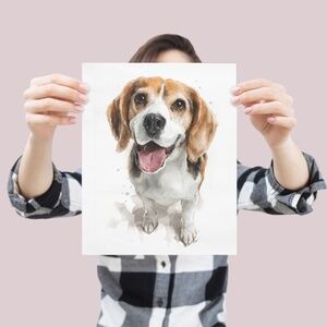 Capture the irresistible charm of man’s best hunting buddy with this heart-melting watercolor Beagle portrait. Big floppy ears, soulful brown eyes, classic tri-color coat, and that famous curious expression are brought to life in soft, vibrant brushstrokes. Perfect for dog moms, hunters, farmhouse kitchens, cozy living rooms, kids’ rooms, or veterinary offices. This cute print adds instant warmth, personality, and “aww” factor to any space. Printed on thick archival matte paper with fade-resistant inks so your Beagle stays adorable for decades. Ships rolled – ready to pop into any standard frame.