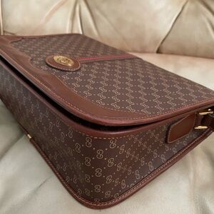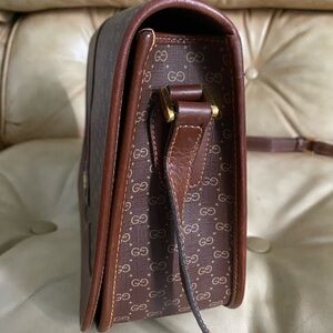 RARE Vintage Gucci Crossbody Bag Micro GG Brown Stripe Flap COA