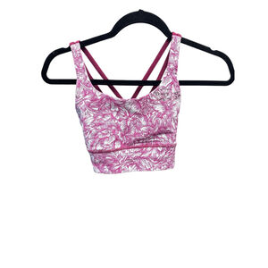 131. Lululemon Energy Bra *Long Line Floral Bloom White Star Ruby / Star Ruby