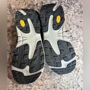 Like new — see updated photos of soles. Size WM 9, B - Medium. With Vibram soles. Experience comfort and style with Topo Athletic women's running shoes. These grey shoes are perfect for your athletic needs, offering durability and support.