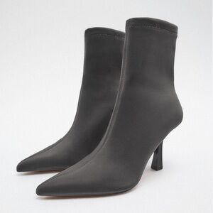 Zara Gray Fabric Pointed Toe Booties