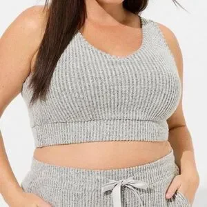 Torrid Gray, Pink, Black Super Soft Plush Waffle Crop Lounge Cami Bundle