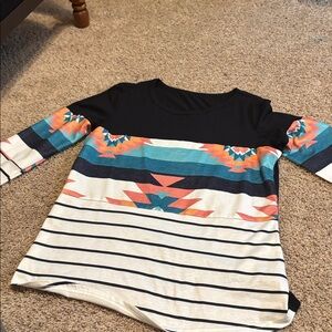 Stylish women's top featuring a vibrant multicolor design with stripes. Perfect for casual outings. Aztec