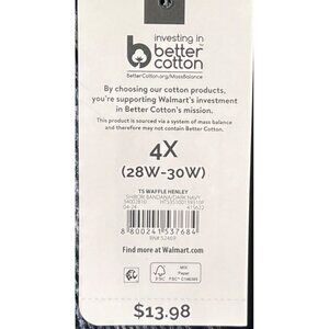 Terra & Sky Womens 4X Waffle Knit Henley Top Navy Blue With Subtle Floral Print