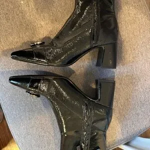 Step out in style with these sleek black patent leather ankle boots. Perfect for any occasion, they offer both comfort and elegance.