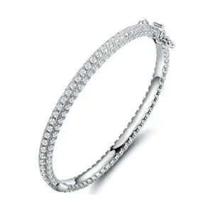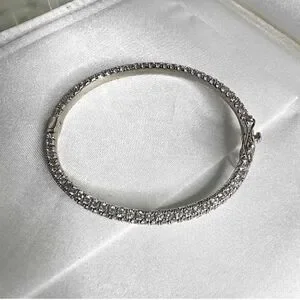18K White Gold Plated CZ Eternity Bangle Bracelet With Box Clasp