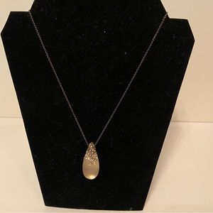ALEXIS BITTAR NECKLACE CHAIN TEARDROP LUCITE PENDANT RHINESTONE GRAY FROSTED 16”