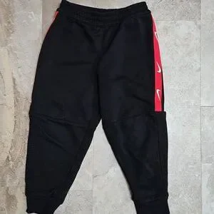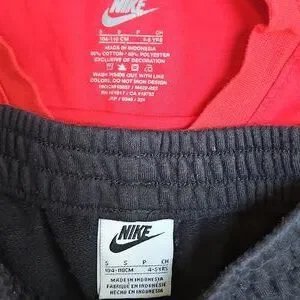 Nike set with red long sleeve top, and black joggers with red and white detail down sides. Size Small 4-5 years. EUC. Normal wear, no known flaws.