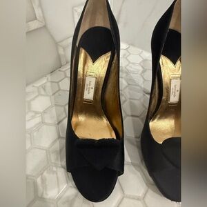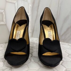 Chic black Kate spade heels with a heart accent at the toe. Only worn a few times and in excellent condition.