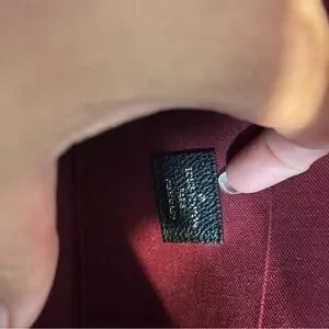for clarification bag it's not scratched or ripped or torn anywhere marks on the front it's just an impression that left something heavy that fell on the bag while it was stored on a bin it's not stained anywhere inside or outside with the exception of one tiny red dot on the back wich is pictured .
