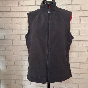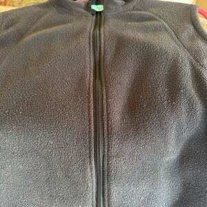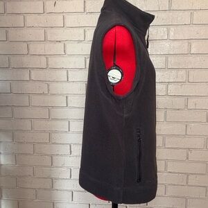 Soft charcoal fleece jacket with zipper closure. Ideal for warmth and comfort.