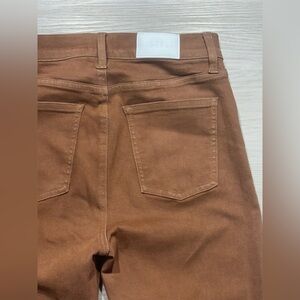 Pistola Lennon High Rise Cropped Bootcut Jeans or the Pistola Kinsley Mid-Rise Ultra-Flare Jeans in a brown, mocha, or cognac coated finish. Pistola Denim is known for blending luxury construction
