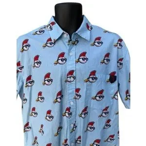 This shirt is a Baseballism Major League Movie Wild Thing Button Up Shirt, which features a pattern of the character Ricky "Wild Thing" Vaughn. The shirt is part of the officially licensed Major League apparel line by Baseballism.