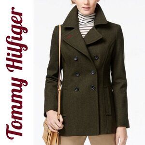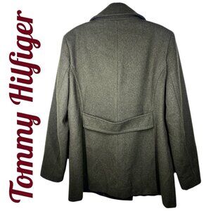 TOMMY HILFIGER WOOL PINE OLIVE GREEN CLASSIC PEACOAT COASTAL FISHERMAN, LARGE