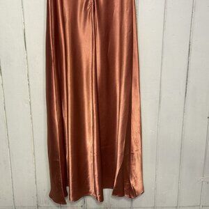 Birdy Grey Monica Size Medium Shiny Satin Terracotta Bridesmaids Maxi Dress NWT