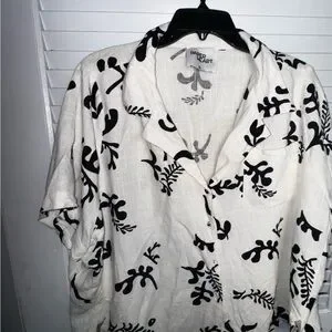 Elevate your wardrobe with the Patterned Heart Women's Button Down Shirt. Featuring a stylish black and white design, this top is perfect for any occasion. Enjoy the comfort and elegance of this must-have piece.