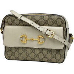 Gucci GG Horsebit Shoulder Bag Canvas Beige White Includes a Certificate of Authenticity!