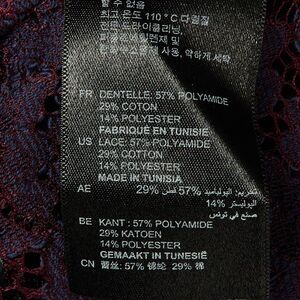 Sandro’s maroon and navy lace crop top captures unmatched craftsmanship in every thread. The floral lace pattern and scalloped edges bring a soft feminine texture while its cropped cut adds a modern shape. Perfect for pairing with tailored trousers or high waisted skirts.