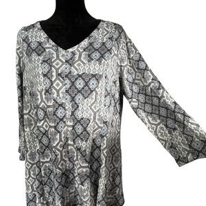 Westport Silver Blue Metallic Sweater Floral Knit Pullover V-Neck Asymmetrical