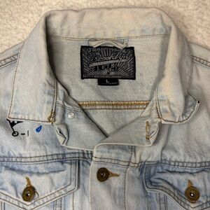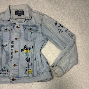 Brooklyn Cloth Women Light Wash Denim Graffiti Art Jean Jacket