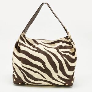 Michael Kors Brown/cream Zebra Print Canvas And Leather Hobo