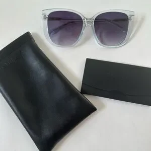 Sleek clear frames with dark lenses. Modern and versatile design.