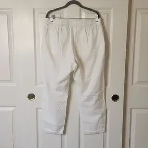 NWOT J.Crew Women's Cream/White Linen Blend Slim Wide Leg Drawstring Pant Size 12