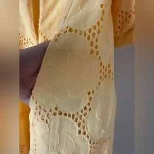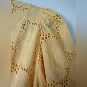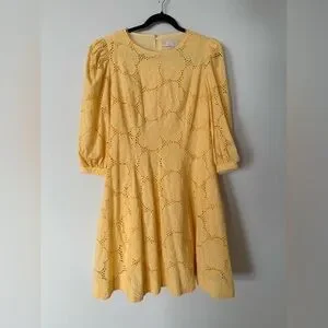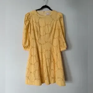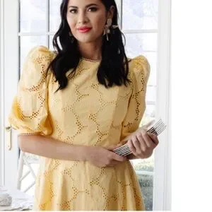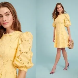 Rachel Parcell Buttercup Puff Sleeve Eyelet Fit & Flare Dress 100% Cotton