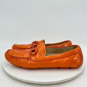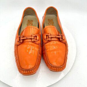 Salvatore Ferragamo Men Size 8.5M Orange Patent Leather Horsebit Loafer Shoes