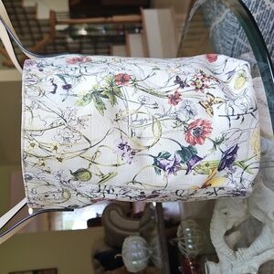 Chic floral tote bag with a vibrant design. Perfect for adding a touch of elegance to any outfit.