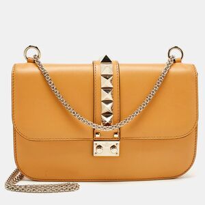 Celebrating the rich heritage of the brand this Valentino bag is decorated with Rockstuds. It is made from leather and it showcases a noteworthy design. Lined with fabric it is secured by a branded lock closure on the front flap. While the chain shoulder strap makes this bag a convenient carry the gold tone accents add to the overall appearance.