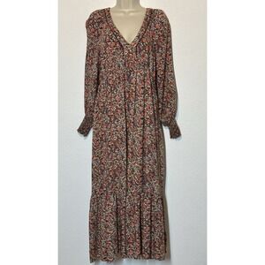 In Loom Floral Ruffle Tiered Midi Maxi Dress Size M Boho Cottagecore Prairie