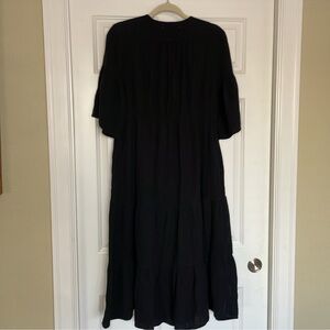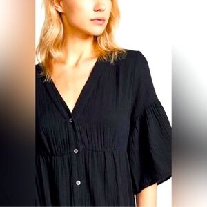 Xirena Tired Kendall Black Crinkle Gauze Midi Dress Size Small Button Front
