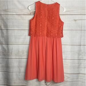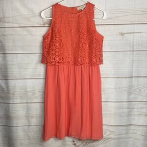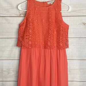 Ann Taylor Loft Coral Pink Overlay Lace Shift Crochet Chiffon Dress Size 2P