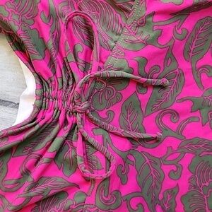 Hot pink with a dark olive print