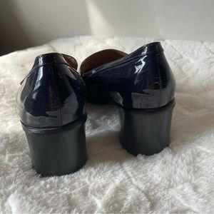 Elegant navy heels with gold chain detail. Perfect for any occasion. Comfortable block heel.preowned condition, with signs of normal wear