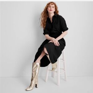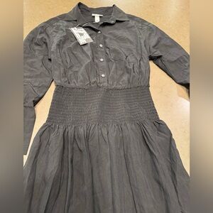 NWT FUTURE COLLECTIVE Collard Long Sleeve Smocked Midi Shirtdress - Sz: XXS