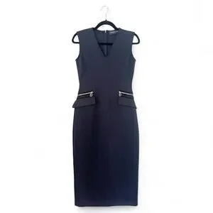 Brandon Maxwell Zip Pocket Midi Sheath Neoprene Dress in Black Size 4