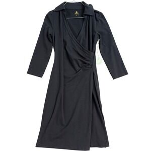 NWT Spartina 449 Island Wrap Midi Dress Black Collared V Neck Ruched XS