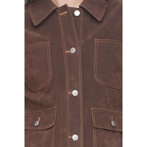 About the brand: Accessible trendy styles for women. Short Wool-Blend Barn Jacket in espresso Approximately 25.5in from shoulder to hem Measurements taken from a size small and may vary slightly by size. Snap closure 90% polyester, 10% wool Lining: 100% polyester Machine wash Imported