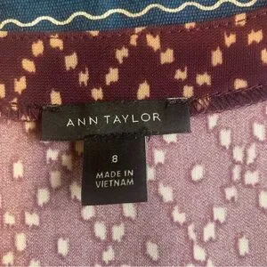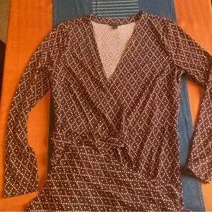 Ann Taylor Burgundy Geometric Long Sleeve Wrap Dress