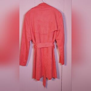 Solitaire Faux Suede Belted Trench Coat Size Large Waterfall Lapel Jacket Duster