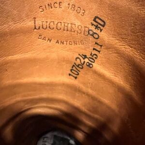 Elegant top quality LUCCHESE Full Caiman Gator pattern western cowboy boots!! Deep mahogany leather. Size 8.5 D. Ideal for standout style. Very good preowned condition, few lite scuff marks, thin wear soles and heels, these are fitting snug in shafts(view photo for measurements)!!!