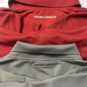 Stylish Under Armour polo shirts in black, blue, red, and gray. Perfect for versatile wear. Comfortable and modern design. In excellent condition no issues