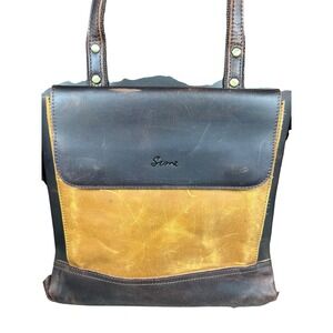 S-Zone Genuine Leather Backpack Tote Bag Brown Yellow Laptop Satchel Travel Work