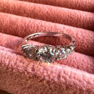 Sterling Silver CZ Ring With Round Cut Trio Stones Elegant Design Size 9 PAJ 925