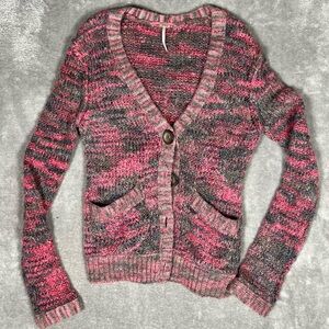 Free People Cardigan Womens Small Pink Chunky Knit Slouchy Wool Alpaca Whimsy