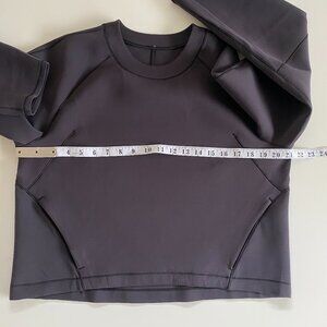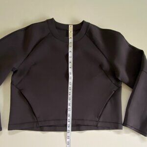 SZ 8 Lululemon AirWrap Crew Cropped Sweater Black, looks more charcoal to me. Sweat wicking, four-way stretch, Luxtreme fabric, added lycra, interior drawcord at hemline, front zip pockets. Lululemon fabric tag removed. In excellent preowned condition. From a smoke free/pet free home.