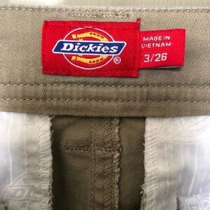 DICKIES Women’s Khaki Stretch Pants Size 3/26 in excellent condition. Please see posted waist measurement for actual size.